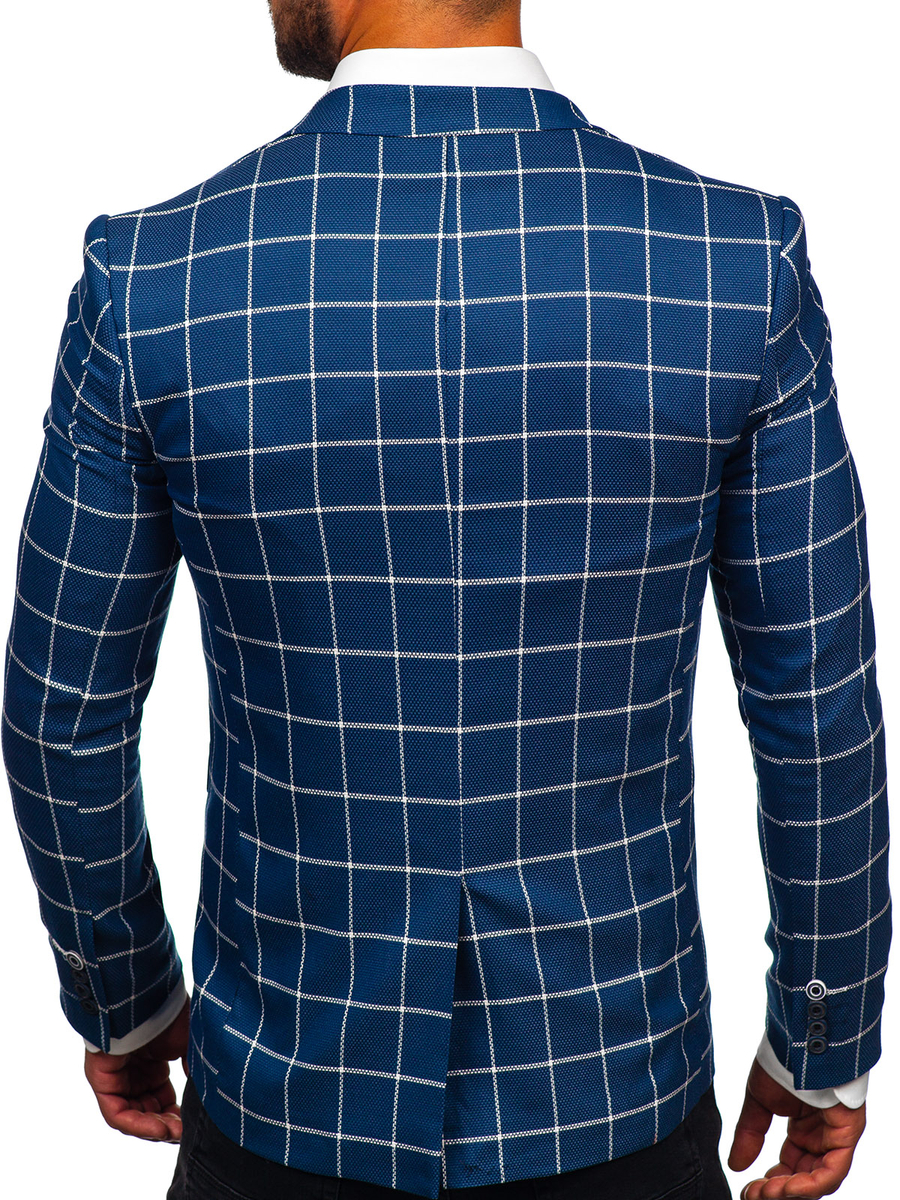 Customer feedback Men's Casual Checkered Blazer Blue Bolf 003