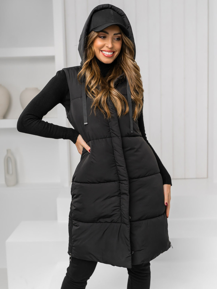 Customer feedback Women's Longline Quilted Gilet with hood Black Bolf 16M9093