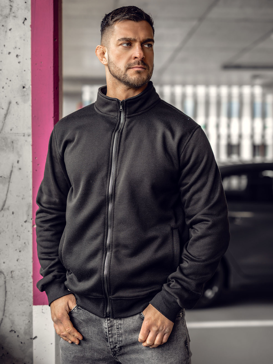 Great black men's stand up sweatshirt with a zipper B2002A from the Bolf collection. The sweatshirt has a stand-up collar and is fastened with a zipper. Its two outer pockets without fastening add to its practicality. Thanks to the ending of the bottom and sleeves with a welt, the sweatshirt fits perfectly to the figure. It comes in several fashionable colors, thanks to which you can stand out with a unique styling every day. The sweatshirt allows you to create many unusual styles. You can put it on to work, school or training. Perfect for sports styling, in combination with a T-shirt and sweatpants.