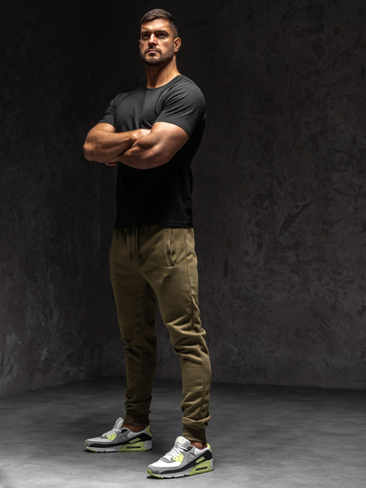 Cool khaki men's sweatpants XW01-C. These trousers have got a waist regulation and two side pockets. The sport look is provided by the straight design and ribbed legs. The fabric is soft and pleasant in touch providing great fitting. These sweatpants fit into casual and sport stylings. Feel free to match them with a sweatshirt, a T-shirt or a long sleeve top.