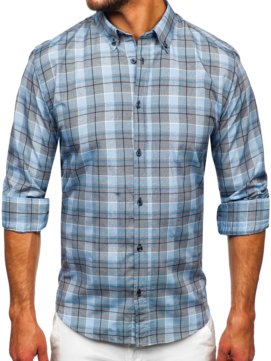 Customer feedback Men's Checkered Long Sleeve Shirt Blue Bolf 22748