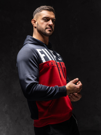 Perfect red men's printed hoodie HY972A1 from the Bolf collection. The sweatshirt has an original print on the front, which gives it a unique character. It comes in three color variants. The sleeves and the bottom of the sweatshirt are finished with a welt. The sweatshirt has a practical kangaroo pocket and a two-layer, adjustable hood. It is a perfect model for supporters of an active lifestyle. You can put it on demanding training, jogging and other outdoor activities. The material from which the sweatshirt was made will make you feel comfortable in it. If you value comfort, create your own sporty look with a tracksuit and a gilet. The versatility of the product also allows you to compose a casual outfit that can be used when going out with friends to the city or going on a weekend trip. Combine the sweatshirt with jeans, a T-shirt and a leather jacket.