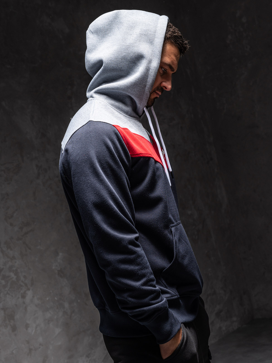 Practical men's hoodie W3878A1 from the Bolf collection. Made of soft and pleasant to the touch material, the sweatshirt ensures maximum wearing comfort. The adjustable hood protects against wind and rain. The sweatshirt is carefully sewn, with attention to every detail. It was designed to serve you for many seasons. The classic cut suits many different styles. You can wear it both every day and to the gym with a T-shirt and joggers.