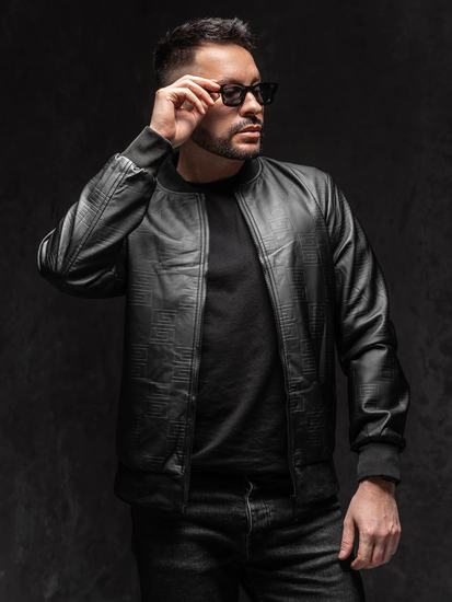 Classic black men's leather bomber jacket 3A65A1 from the Bolf collection. The sleeves and the bottom are finished with a welt, thanks to which the jacket fits perfectly to the figure and protects against the cold. It is fastened with a zipper and has a stand-up collar. The jacket has outer pockets with zippers and an inner pocket without fastening in which you can safely hide the most necessary things. The versatility of the jacket allows for its unusual use in sports and casual outfits. With jeans and a sweater you will create a perfect, casual look.