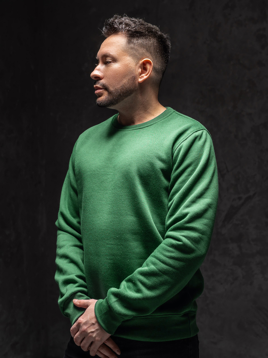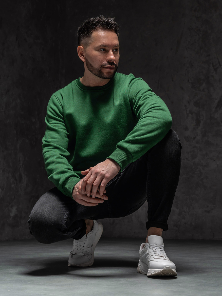 Minimalistic green men's sweatshirt from the Bolf collection. It's perfectly fitted, comfortable and universal. The presented model can be worn with jeans or joggers. The subtle colour fits to sophisticated stylings.
