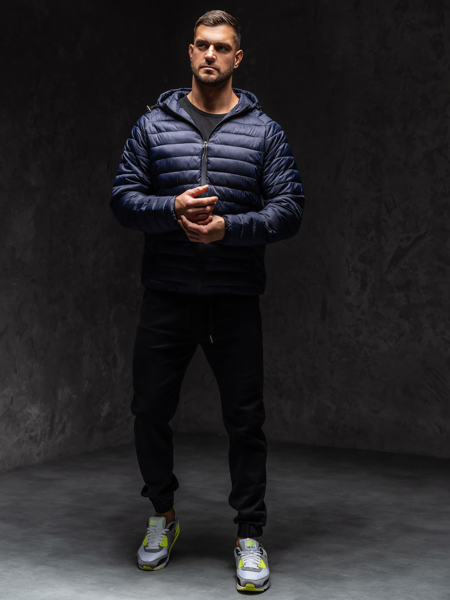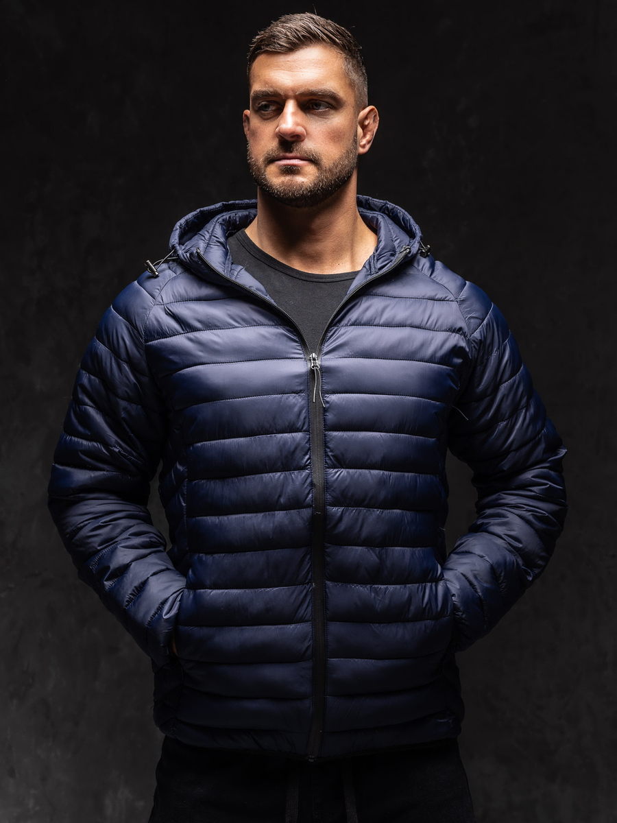 Fantastic navy blue men's lightweight quilted jacket 13021A1 from the Bolf collection. A comfortable and practical jacket is a must have in the wardrobe of every active man. You can put it on for training or a walk. It is equipped with a zipper. It has an adjustable and non-detachable hood that provides excellent protection against rain or cold. Two zippered pockets are a practical element of the product. The bottom and sleeves are finished with an elastic trim. The jacket is made of 100% nylon, so it is stretchy. It will look perfect with jeans or joggers.