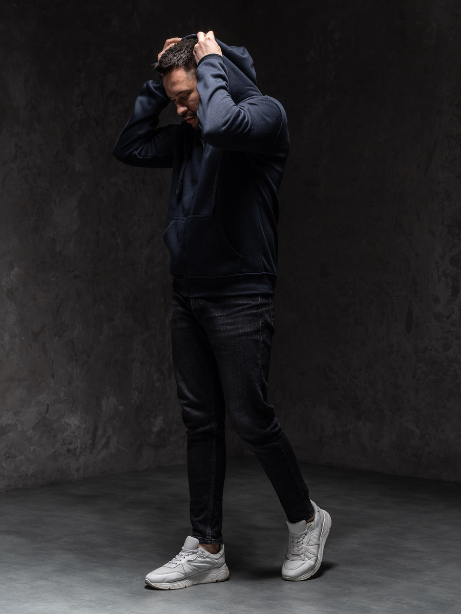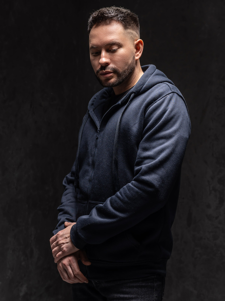 Inky men's hoodie with a zipper 2008A1 from the Bolf collection. It's a classic design made of high-quality material. This model comes in different colours. It has got an adjustable hood and side pockets. The bottom and sleeves are elasticated. It is designed for those who value comfort and minimalistic style. It's very comfortable and practical. It's an absolute must have. The design is classic and fits to various stylings. It will surely meet your expectations regardless of the colour. It comes in many beautiful versions. Wear it all year long.