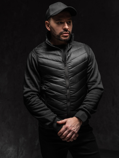 Fantastic black men's quilted gilet 13073A1 from the Bolf collection. There is a zip fastening and a stand up collar. Its two outer pockets with zippers add to its practical character. It is made of 100% nylon and the bottom and armholes are finished with an elastic trim. Quilting on the entire surface gives it a sporty character. This classic-cut vest will be a great alternative to a jacket in the fall season, providing protection against the cold and wind. It will look great with sweatpants and a sweatshirt creating a sporty, loose outfit.