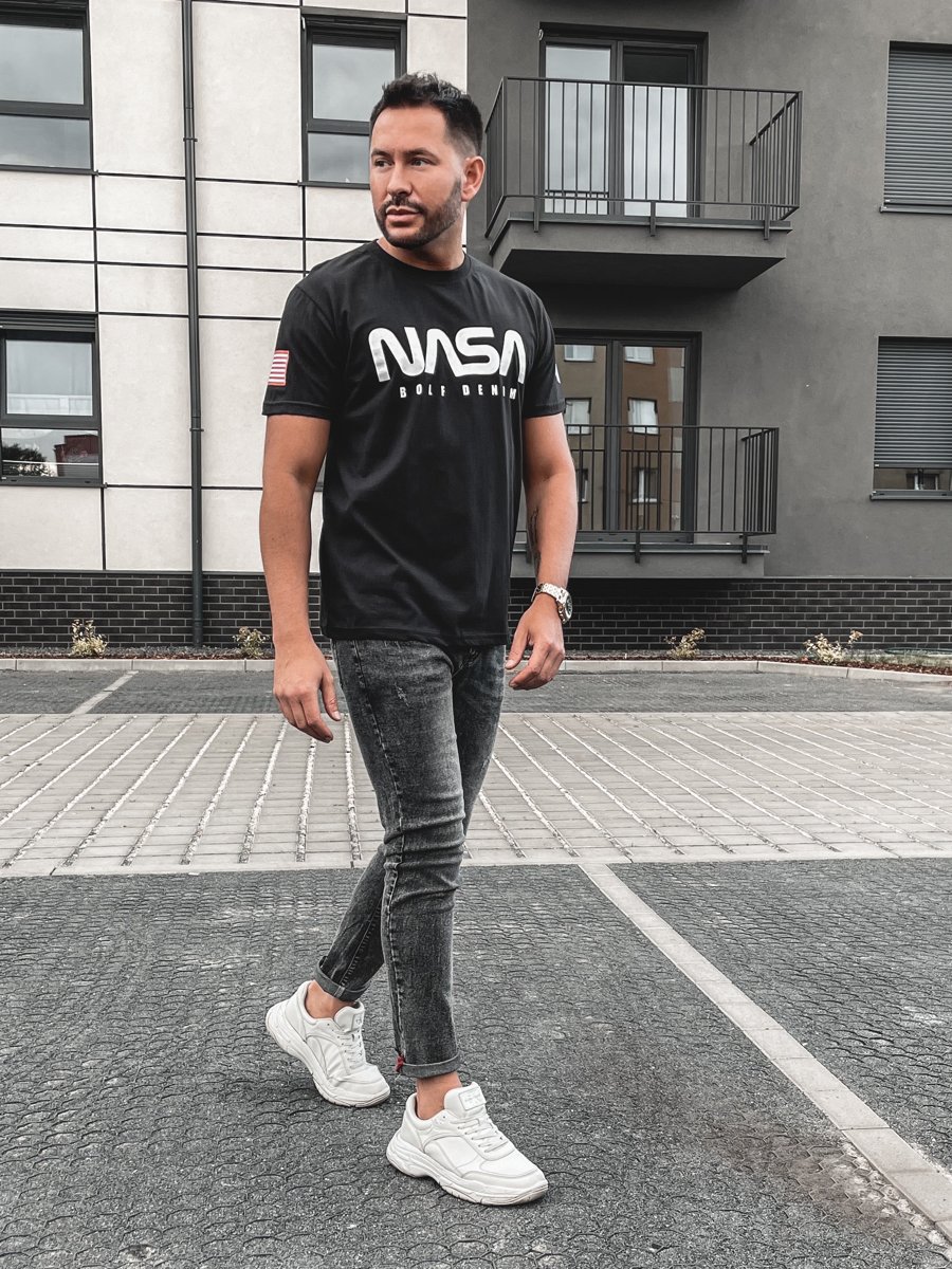 Eye-catching black men's cotton printed T-shirt 14401A2 from the Bolf collection. This product model is available in two color variants with a fashionable print that will add character to any styling. The product has a round neckline and is made of 100% cotton. The t-shirt is pleasant to the touch thanks to the highest quality material. It will look great in summer styling in combination with shorts and a sweatshirt.