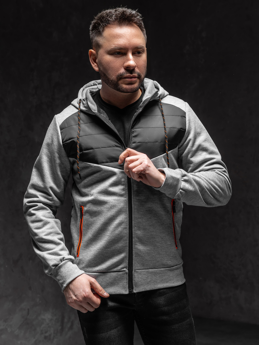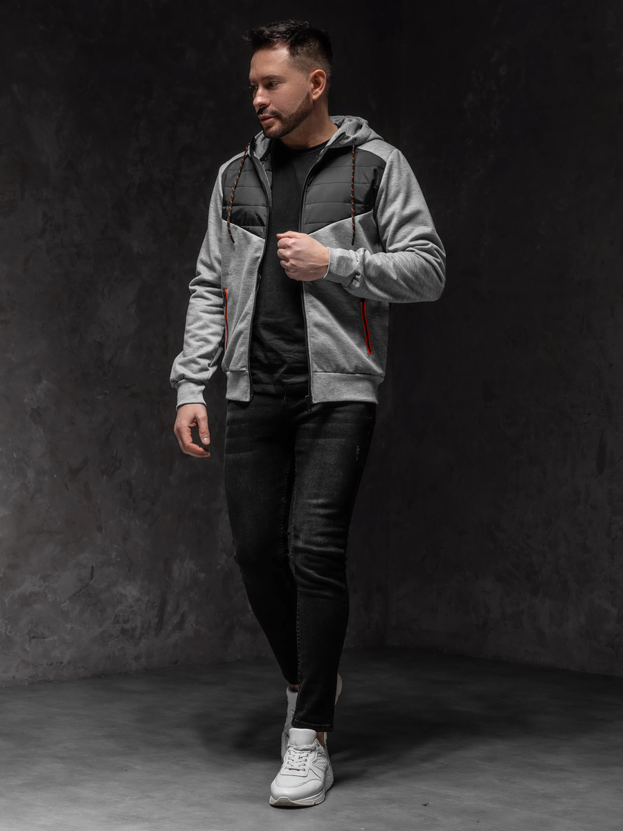Stylish grey men's lightweight jacket KS2149A1 from the Bolf collection. It is fastened with a zipper, has a hood connected to a collar. There are quiltings all over adding sport style. The bottom and sleeves are finished with a welt, thanks to which the jacket adapts to the figure. It is made of 100% polyester. It has two practical outer pockets with zippers. Thanks to its versatility, the product can be combined with many styles. Perfect for a walk, meeting with friends or a trip to the city. This jacket will create a perfectly matched look with chinos or sweatpants.
