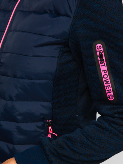 Fantastic navy blue women's lightweight quilted jacket with a hood KSW4001A1 from the Bolf collection. The adjustable hood combined with the collar and zipped outer pockets are perfect for creating sporty styles. Pair it with jeans or sweatpants.