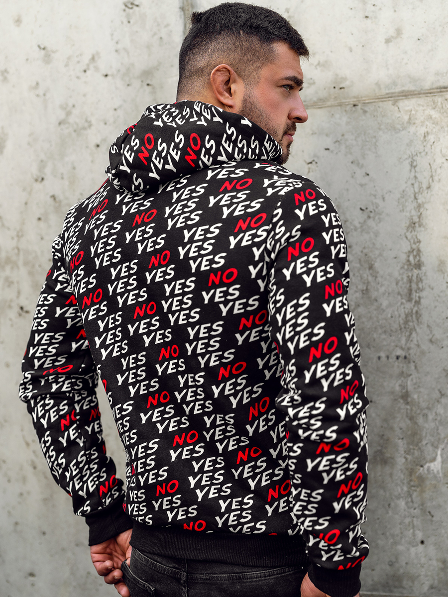 Fantastic black men's printed hoodie 141013A2 from the Bolf collection. It has an adjustable, double-layer hood and practical, two side pockets. The sleeves and bottom are finished with welts. It was made of 70% cotton and 30% polyester. This model is distinguished by rich, unique and distinctive colors. Thanks to the multicolored, decorative prints, you will not find the other one! A hoodie will work at any time of the year and in all circumstances: jogging, walking or going out into the city. A very pleasant to the touch sweatshirt is perfect for colder days. Wear it with jeans or joggers. It works well with a lightweight jacket or a bomber jacket.