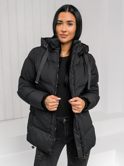 Customer feedback Women's Quilted Winter Jacket with hood Black Bolf 5M3251