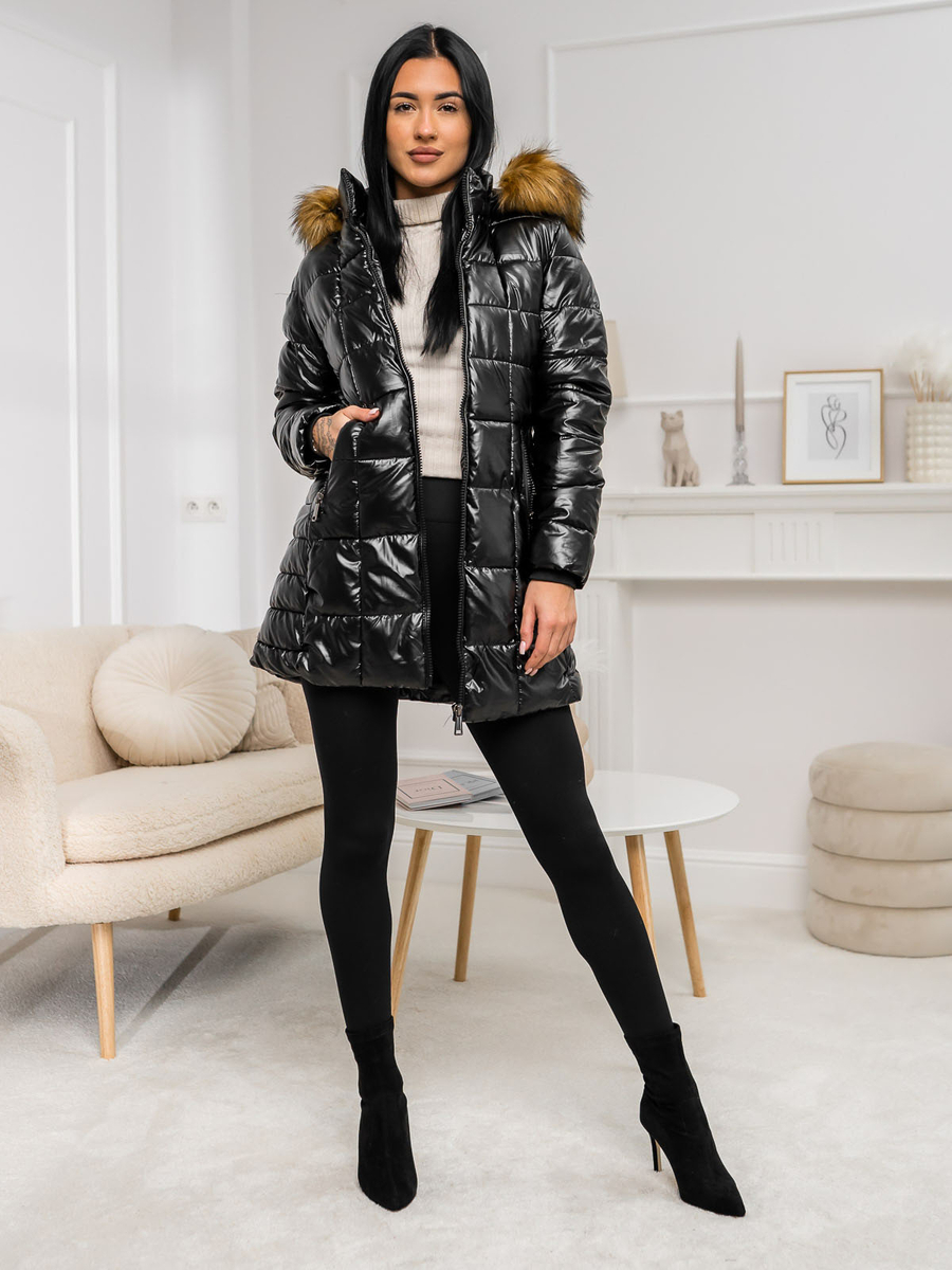 Customer feedback Women's Longline Quilted Winter Jacket with hood Black-Brown Bolf 16M9120