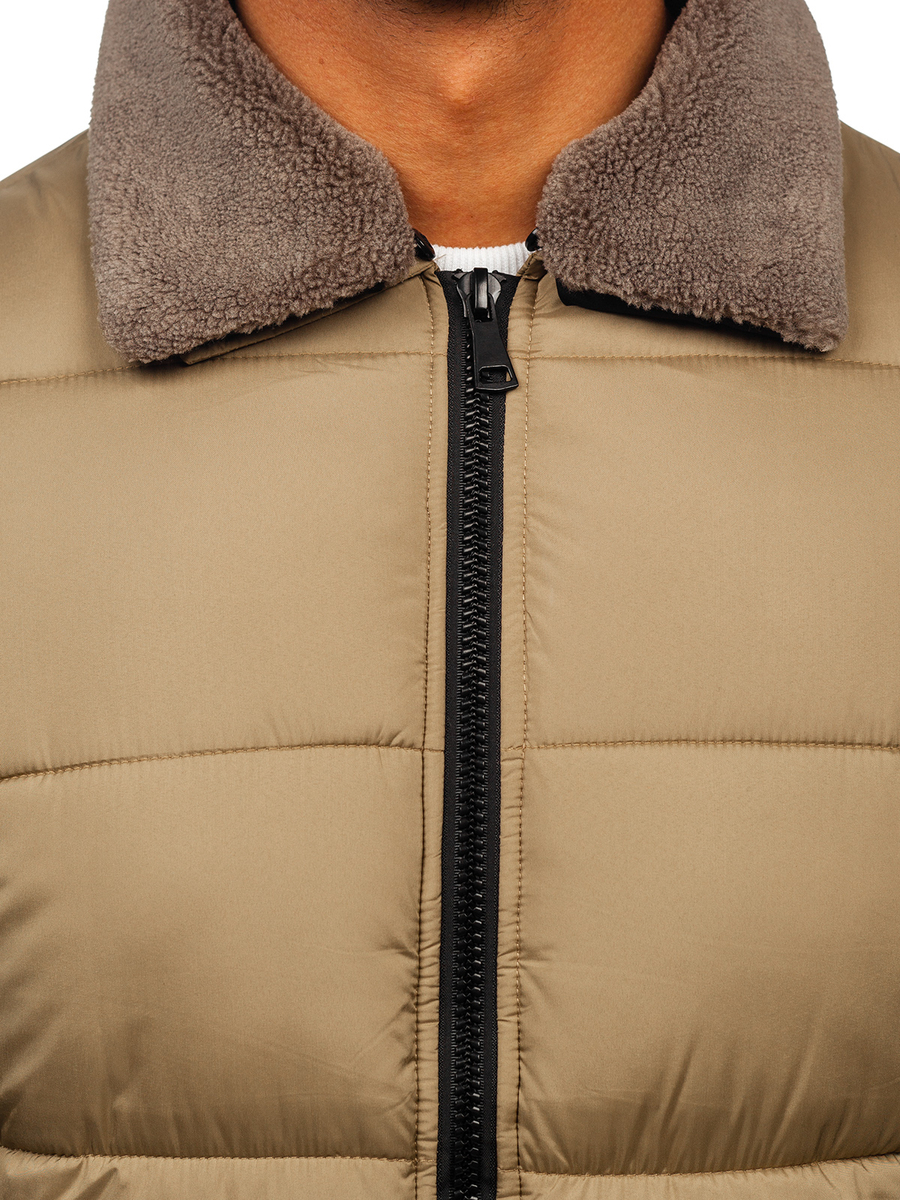 Customer feedback Men's Quilted Winter Jacket with fur Beige Bolf 31M5010