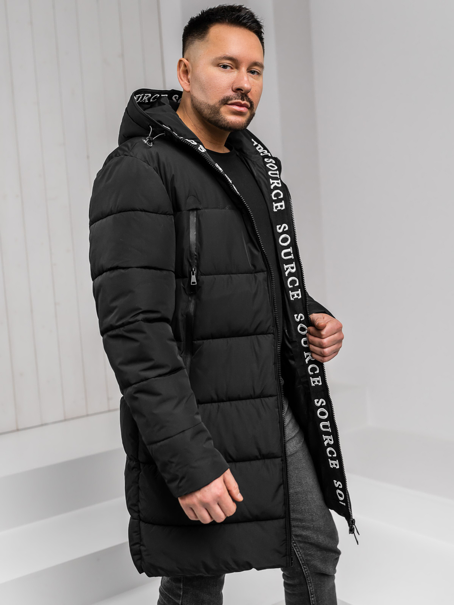 Customer feedback Men’s Longline Quilted Winter Jacket with hood Black Bolf 22M329