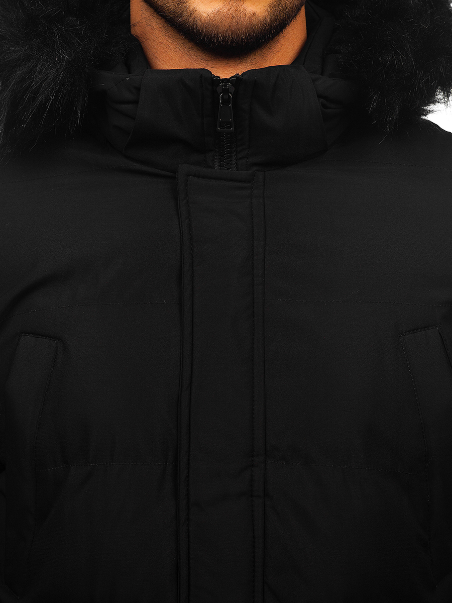 Customer feedback Men’s Longline Quilted Winter Jacket with hood Black Bolf 8011